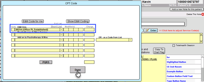 Select the service code from the first dropdown spot in the CPT Code pop-out.