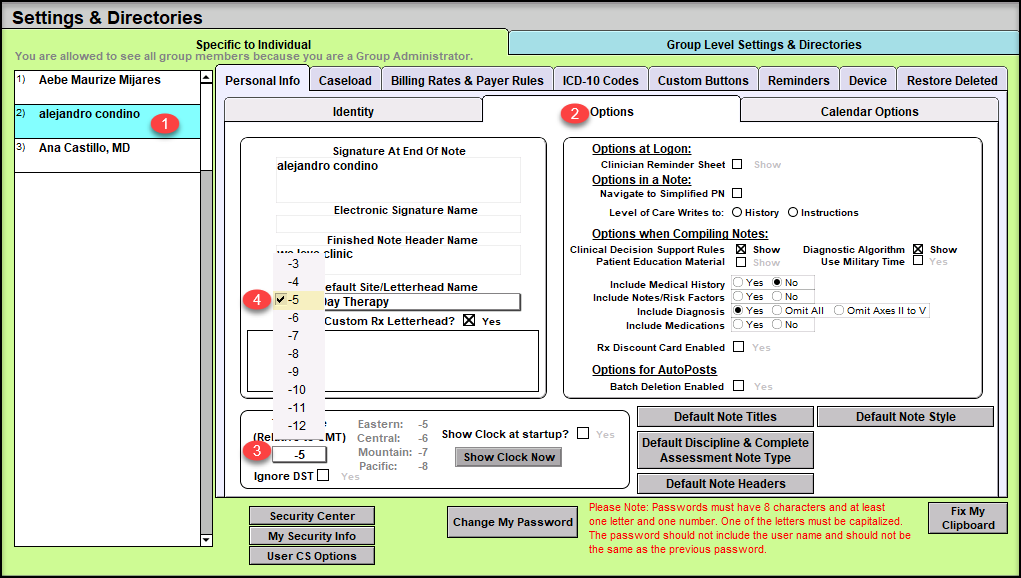 7. The next time any user login to ICANotes, their time zone from this point forward will display the proper time reflective of the selected time zone.