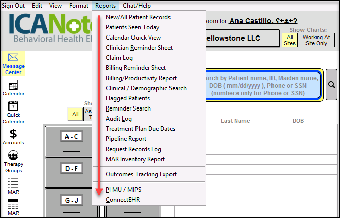 5. Now the user, on their next logon will have a new report available under "Connect EHR"