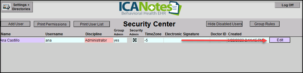 2. Edit for the desired User.