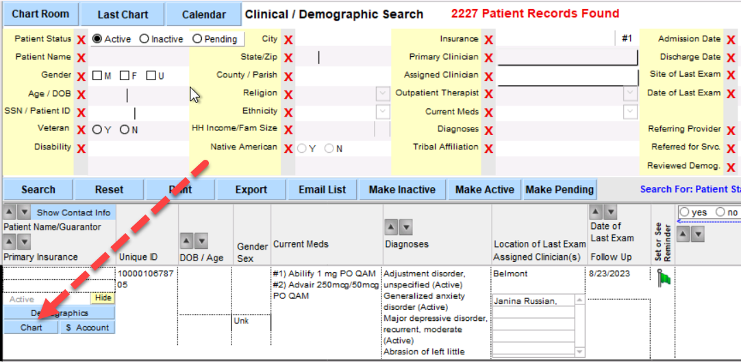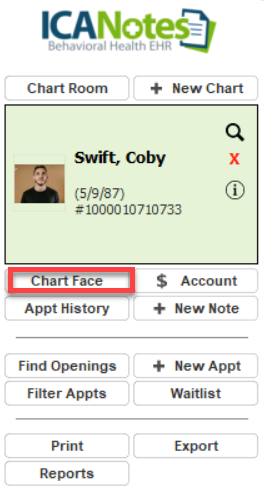 Locating a Patient Chart in ICANotes