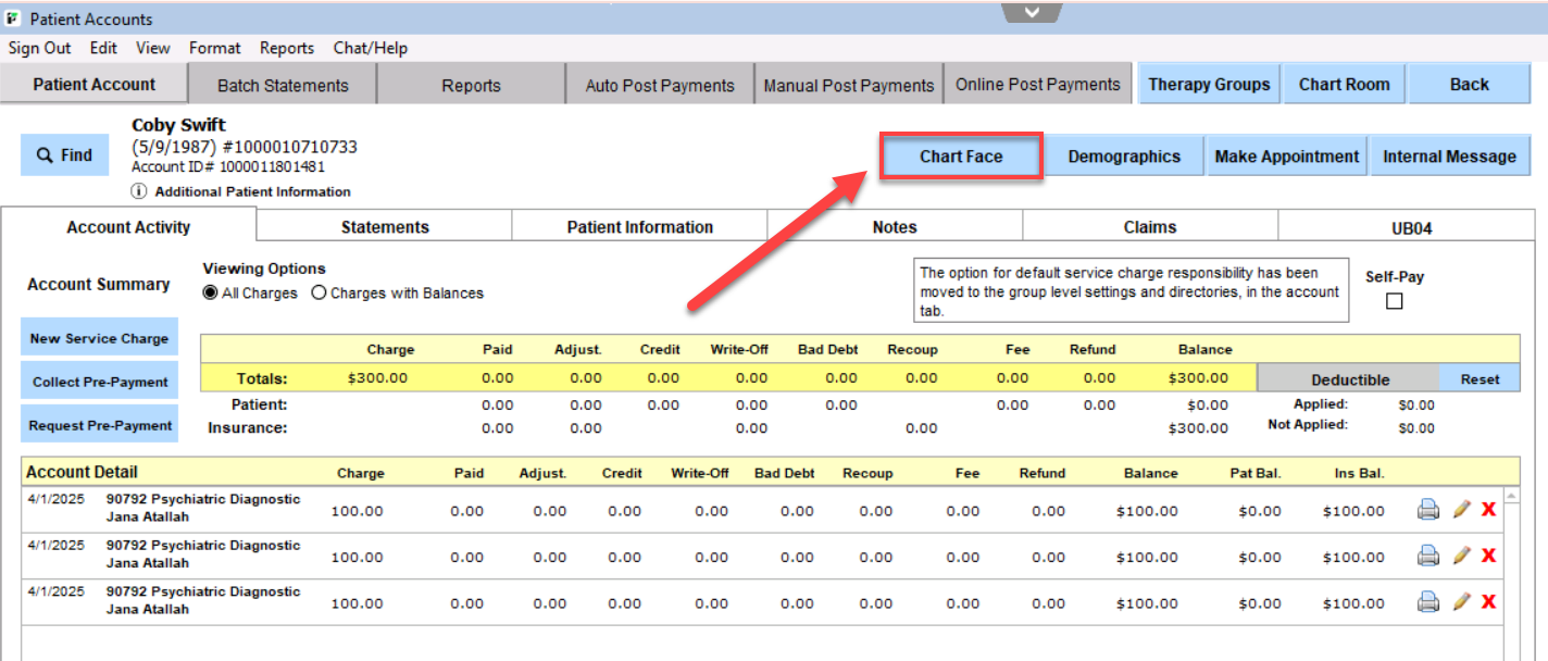 From Patient Accounts, use the