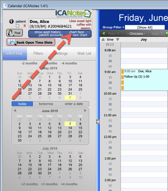 takes you right to the last patient you have visited, if you have visited a patient's chart in your current ICANotes session!