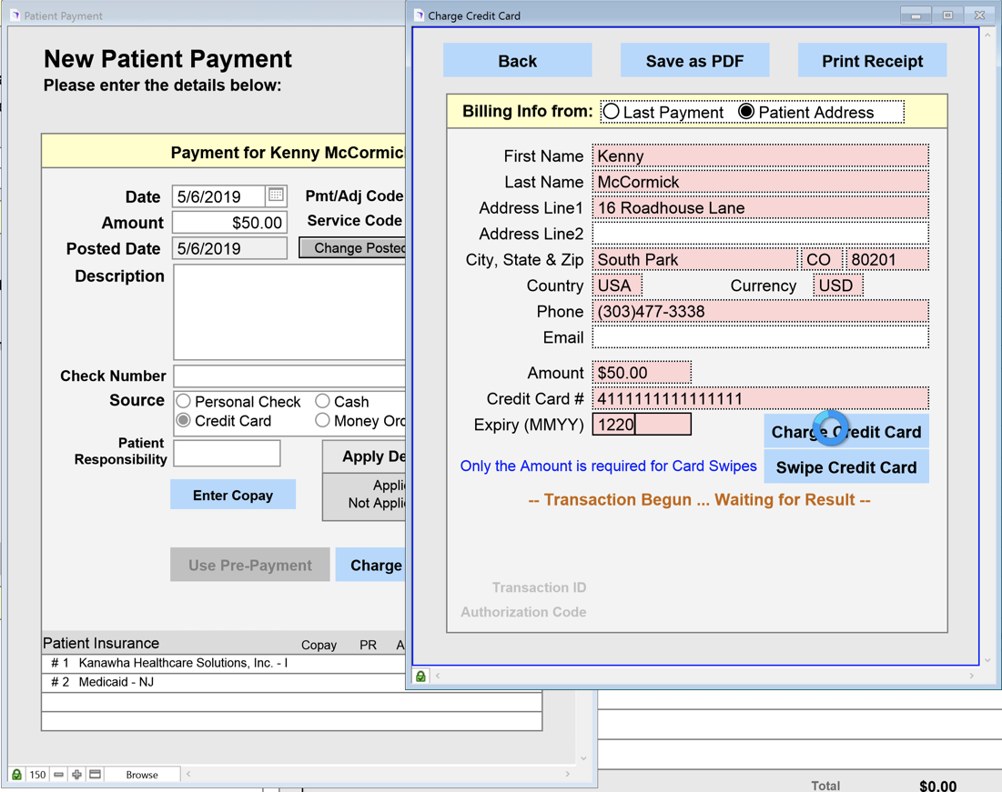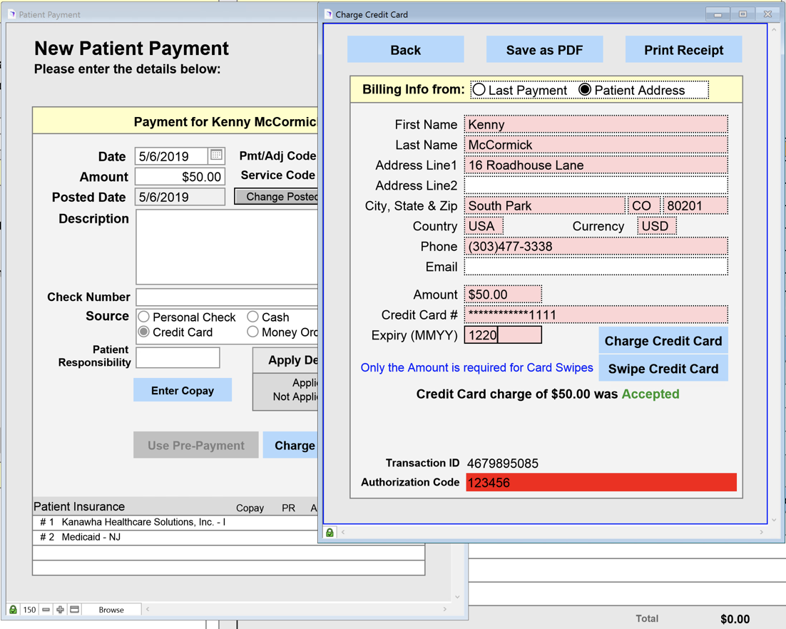 3. Under the Patient Payment window, fill out:
