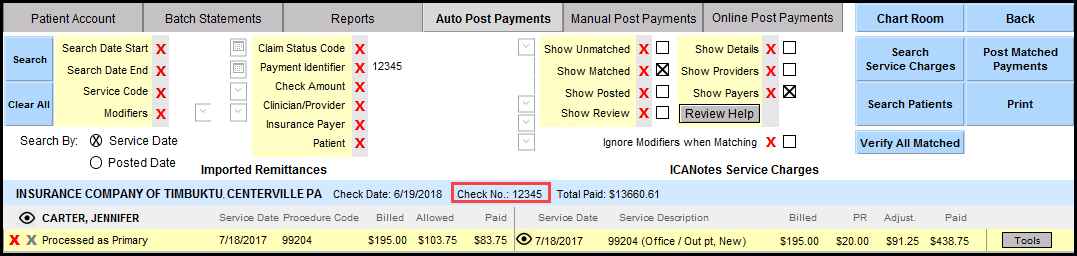 2. Show Matched is automatically checked when you first access Auto Post Payments. If you do not see the results you expect, you can expand your search to include Unmatched Payments.