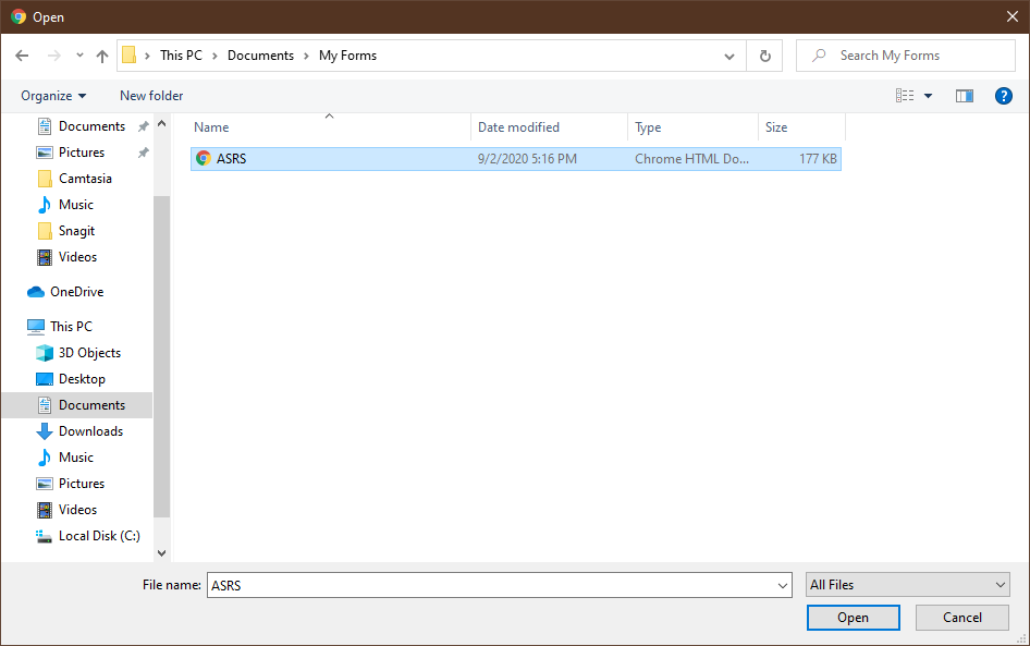 Once you've chosen a folder, you would click on to find the form you'd like to upload on your local computer:
