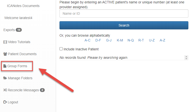 Once you've logged in, you'll see several options on your left-hand side of the screen; the one we're looking for is Group Forms