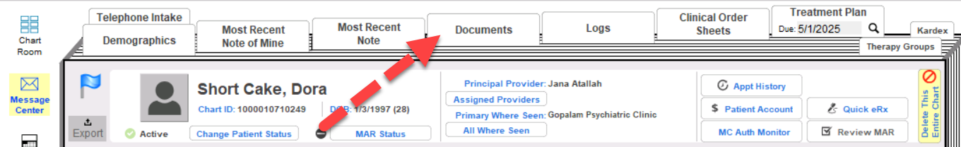 3. From the Chart Room, locate the patient's chart and open it.