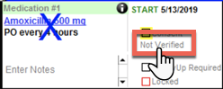 2. If the medication is correct MAR, click Not Verified to verify it.