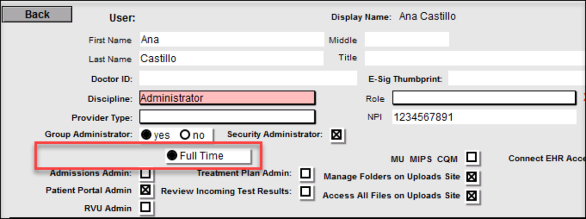 Switching from full-time to part-time process has been updated. When a Security Administrator switches a Part-time user to Full-time, the part-time checkbox will no longer be visible in our system. This will also be effective for the Intern/Resident checkbox.