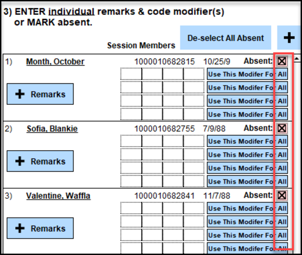 Group Therapy Notes 'Select All Absent' feature: