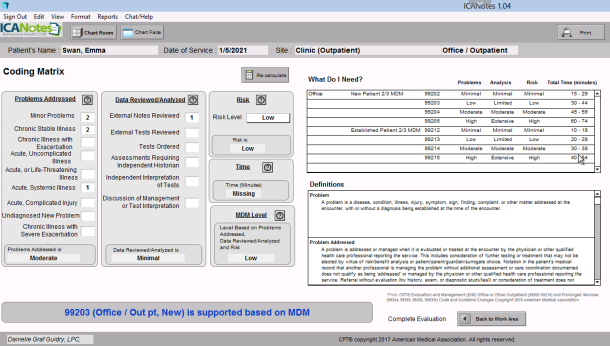 The MDM and Total Minutes Spent fields will drive the new Coding Matrix.