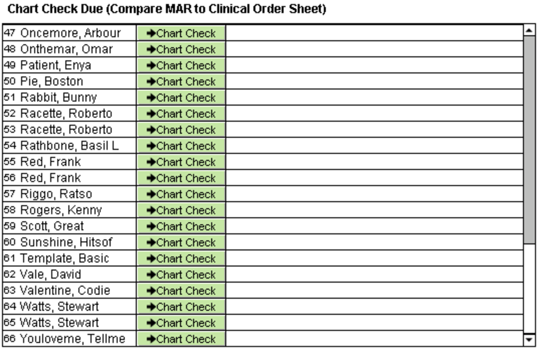 A new feature to improve patient safety for patients on the MAR has been added. The MAR Chart Check allows users to compare the current MAR to the latest Clinical Order Sheet.