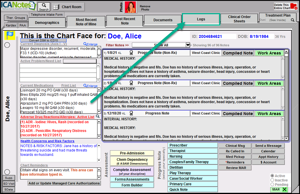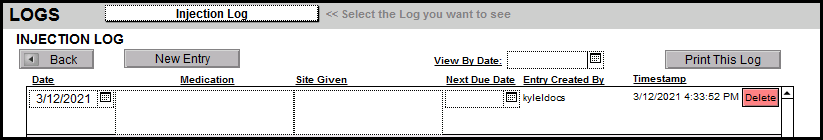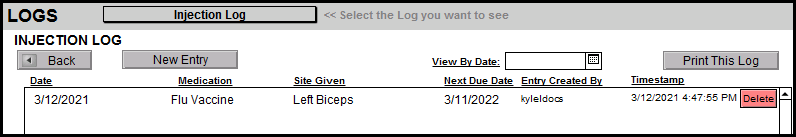 Alternatively, you can access the Injection Log from a Nursing Progress Note.