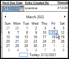 8. Click into the Next Due Date to open the calendar where you can choose what day the next injection is due.