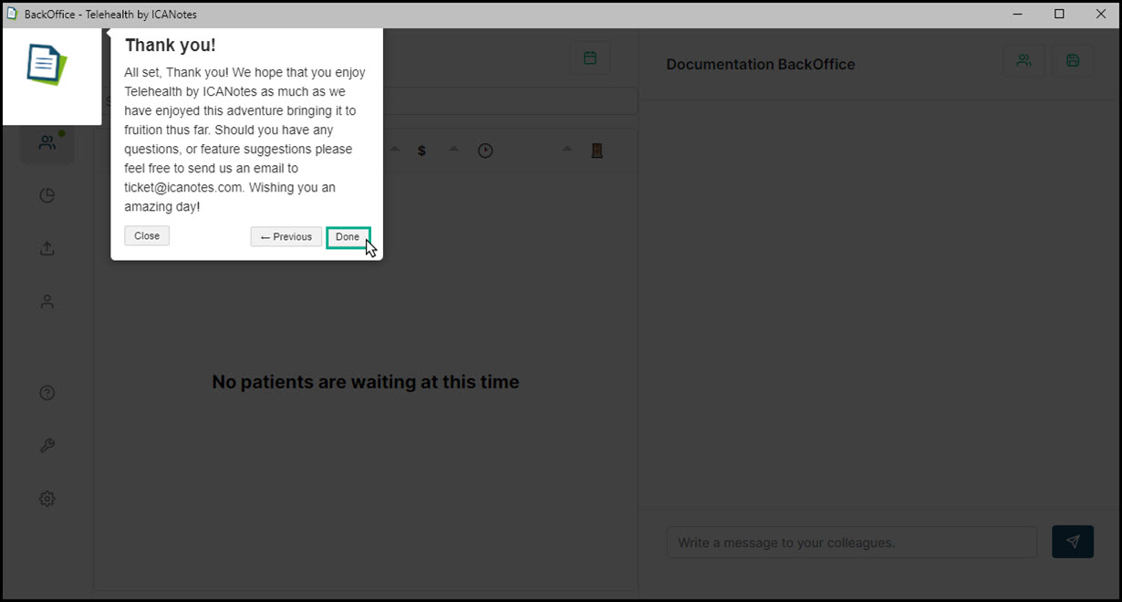 ICANotes Telehealth Back Office will now always populate on top of other windows you may have open. This requires installation of an icon on your computer.