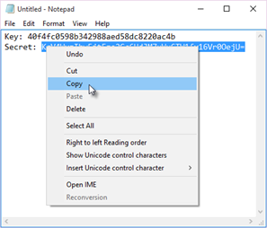 19. It is very important to copy the key and secret from the text program (see step 10) and paste into the fields in ICANotes as this will ensure that every value is correct. Watch out for spaces at the beginning or at the end.