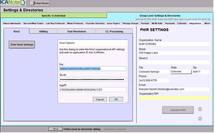 button to enable the ICANotes integration.