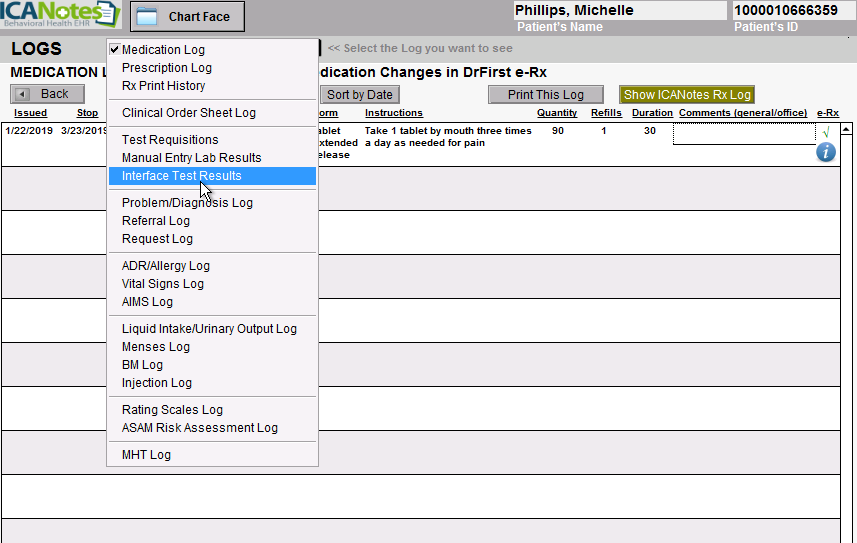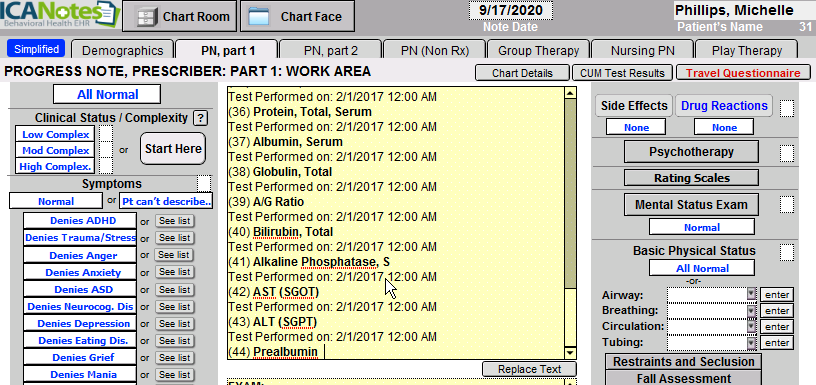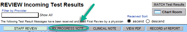 RX PROGRESS NOTE: When the clinician clicks the RX PROGRESS NOTE button, a prescriber progress note will be created and the lab test results will be automatically populated in the note.