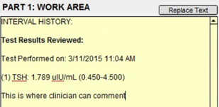 After the progress note has been created, the clinician can add comments about the test results within the note.