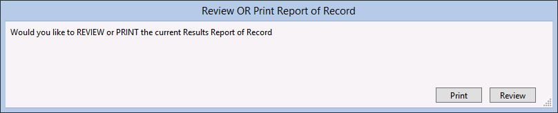 The user has the option to review (opens the results) or print the results.