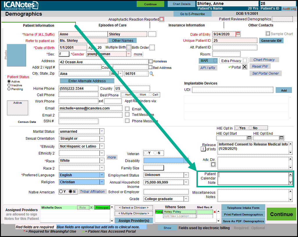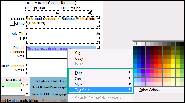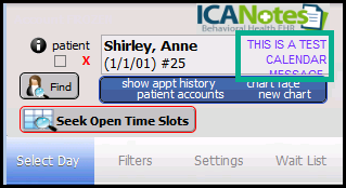 2. Click in the field labeled Patient Calendar Note and enter the text you want to appear in the Appointment Book.