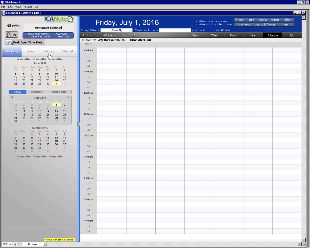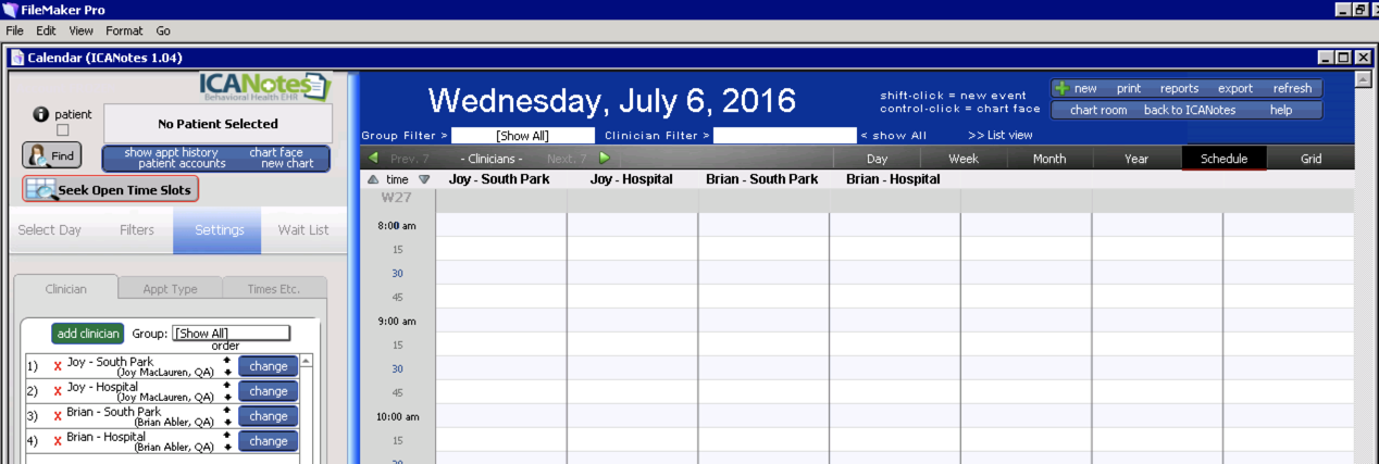 In this demonstration, both providers will be put on the calendar for two locations.