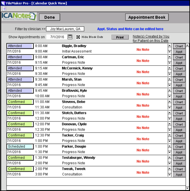 After setting this up, the provider will be able to see their schedule from the Quick Calendar by clicking the
