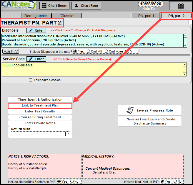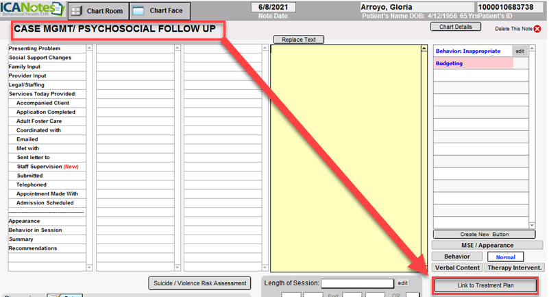 Within ICANotes, you are able to link Treatment Plans directly to the note.