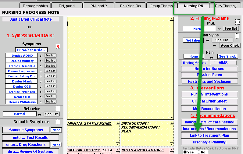 - Choose the treatment plan you are addressing in this note.