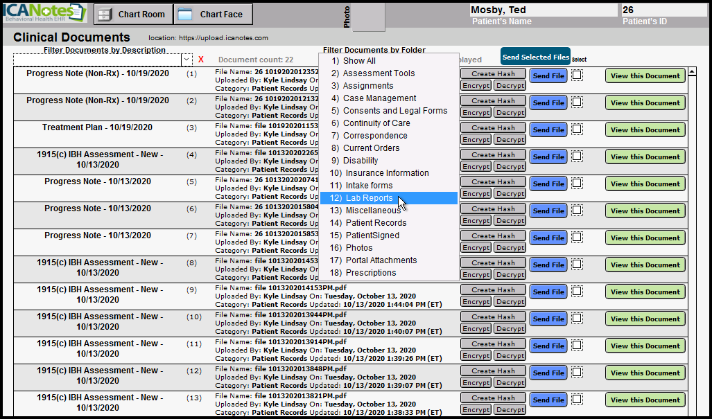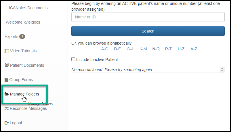 Users given permission to manage folders will be able to edit, add, or delete folders from the Upload Site. These folders will be able to be used to filter results on the Documents page within ICANotes.