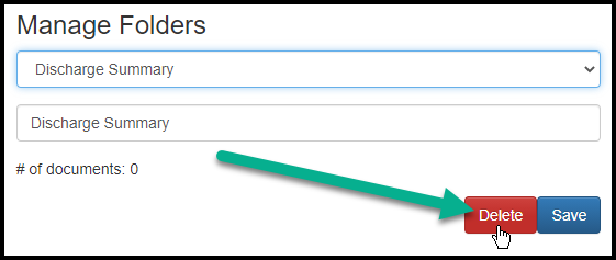 1. Select the folder that you want to delete. Please note, the folder needs to be empty with all patients in order to delete it.