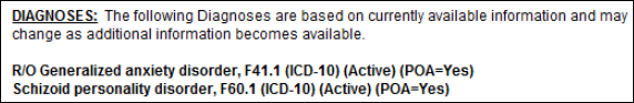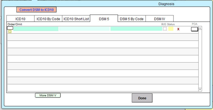 If a diagnosis code cannot be found in the pre-populated diagnosis entries, one can be manually entered in the work areas of a note.