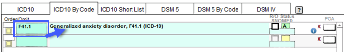 Type in your chosen ICD-10 code in the first available entry box then hit the Tab or Enter key on your keyboard to populate the description for your code: