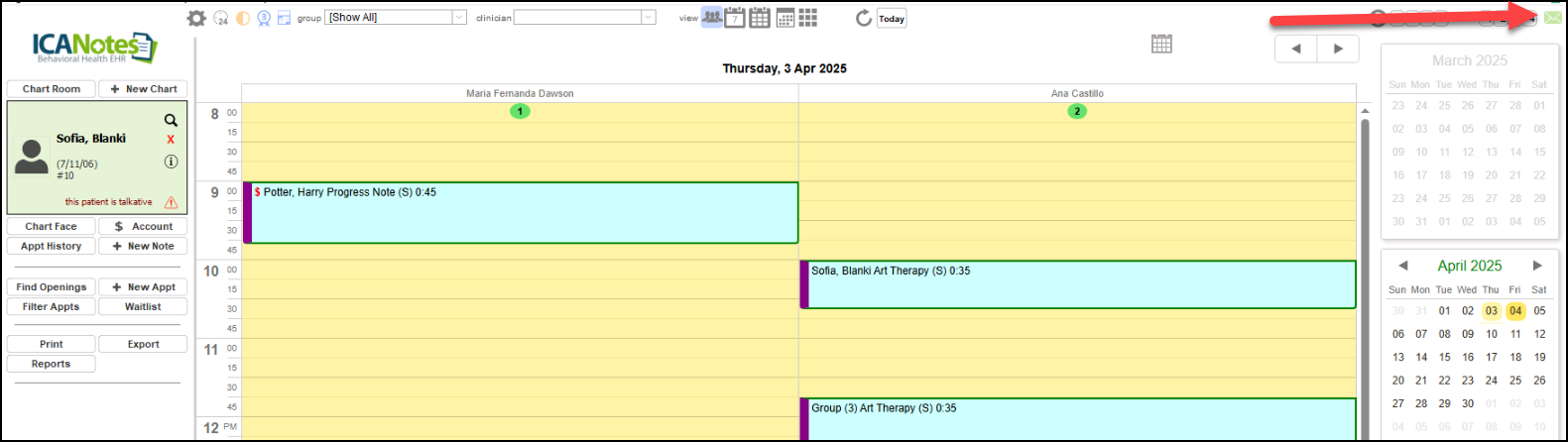 When you first log into ICANotes, go to the Calendar from the Calendar button.