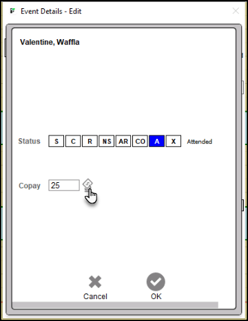 2. Click on the pencil icon for the patient that you want to document the copay.