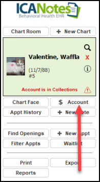 icon in the patient window. From here, I can see the ID number, DOB, phone numbers, insurance carrier, patient balance, and the principal provider. Click the