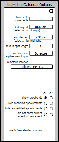 button to open the Individual Calendar Options.