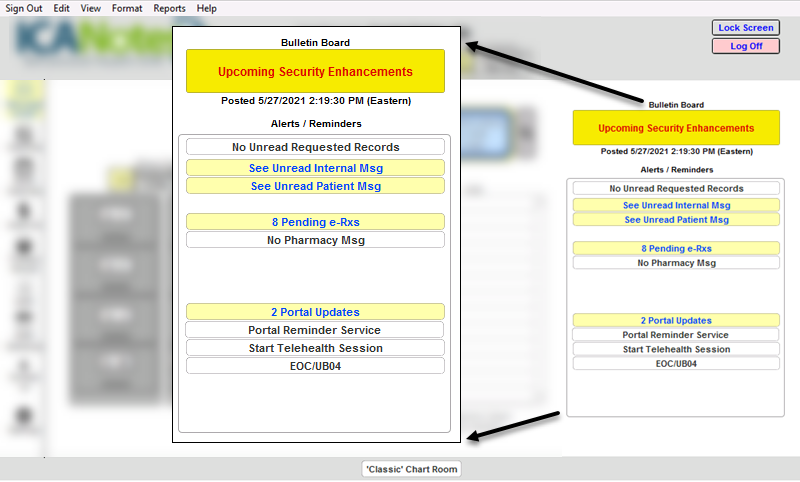 Bulletin Board - ICANotes notifications pertaining to maintenance and system updates, upcoming webinars, known issues, and more