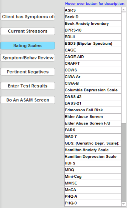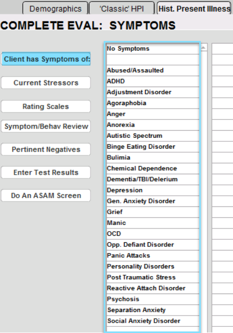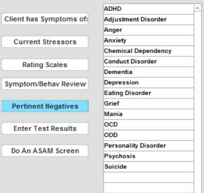Click Client has Symptoms of to see the full listing of Symptoms.