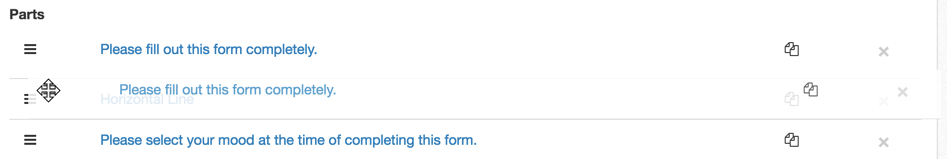 12. In the Parts section, click the button. This is where you create the content of the form.