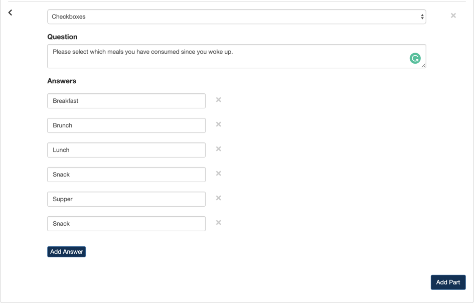 Checkboxes selection: After typing in the question, click the button to fill out answers.