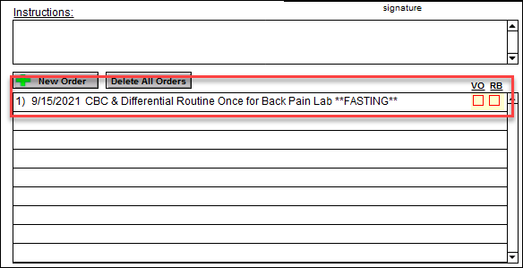 - All Orders will be itemized here. Click Delete All Orders to clear the list. Nurses can indicate when an order is a Verbal Order (VO) and has been Read Back (RB).