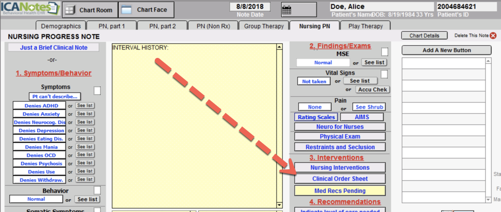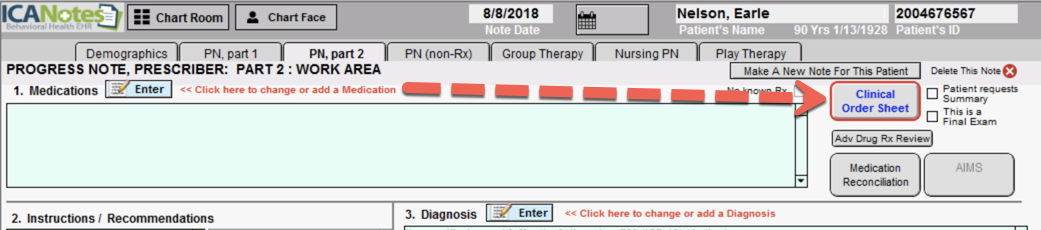 On the Prescriber Progress Note, go to PN part 2 tab and click the