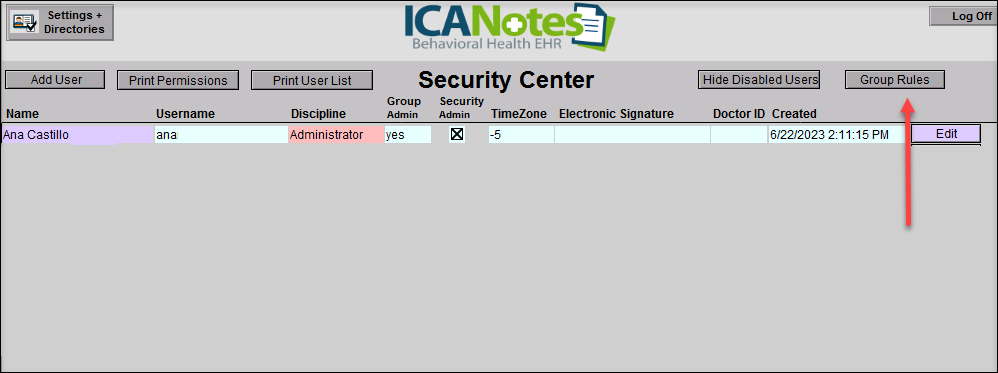 2. From the Security Center, at the top right side you will find the Group Rules button: