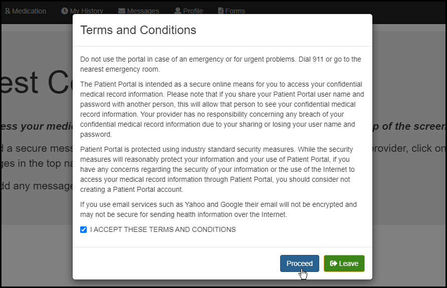 10. After the terms and conditions were accepted, s/he will have full access to the patient's portal.