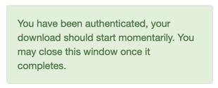 5. The recipient will click on the link and copy/paste the authentication code in the web browser. Click the button for the information to directly download to the email recipient's download folder.