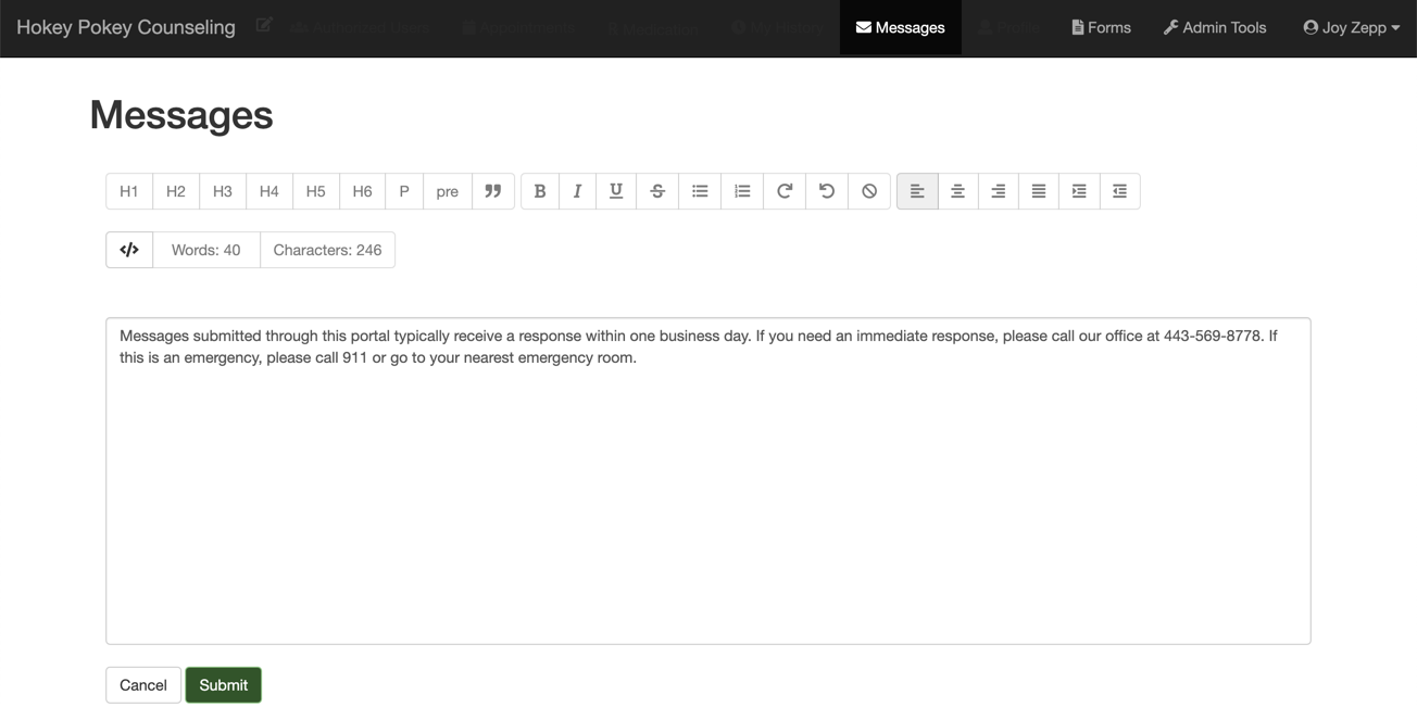 3. On the main page, you can change the name of the Patient Portal and the welcome message.