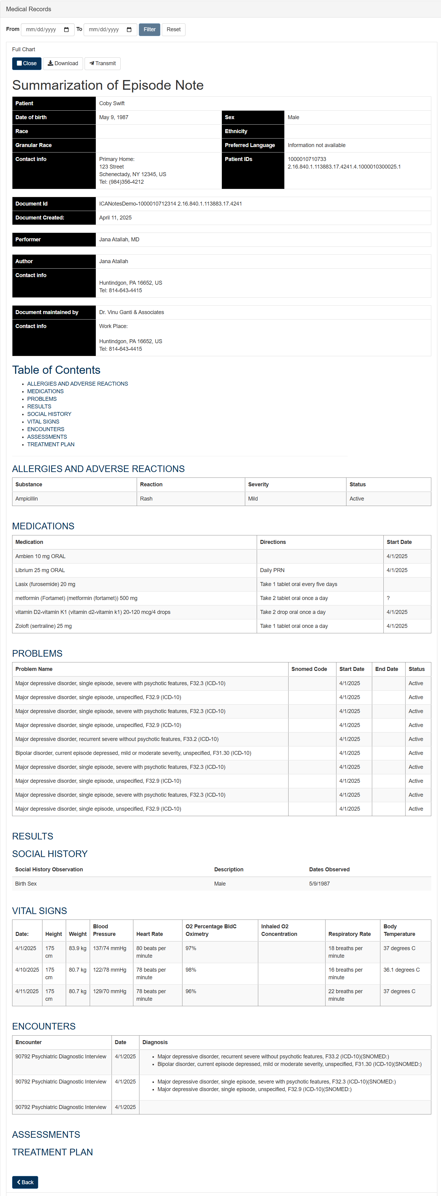 3. If you want to send your medical record to another provider, click the ‘Transmit’ button and enter a secure email address where you would like to send this information.