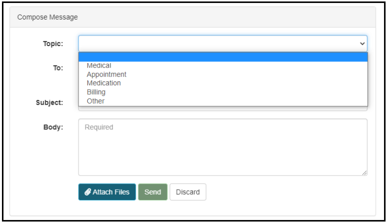 2. Once you’ve selected ‘New’, choose the drop-down menu to select the topic for your message.